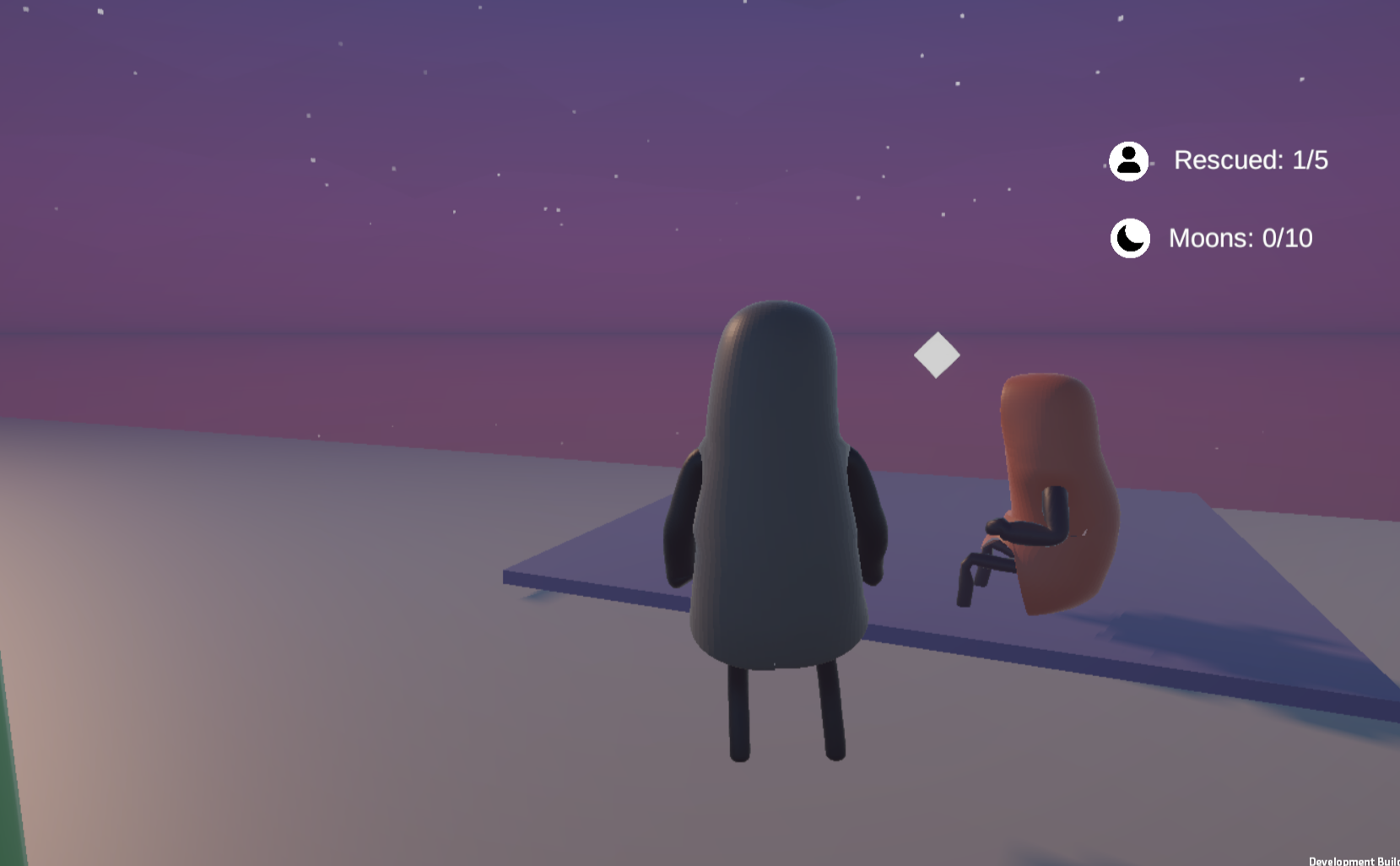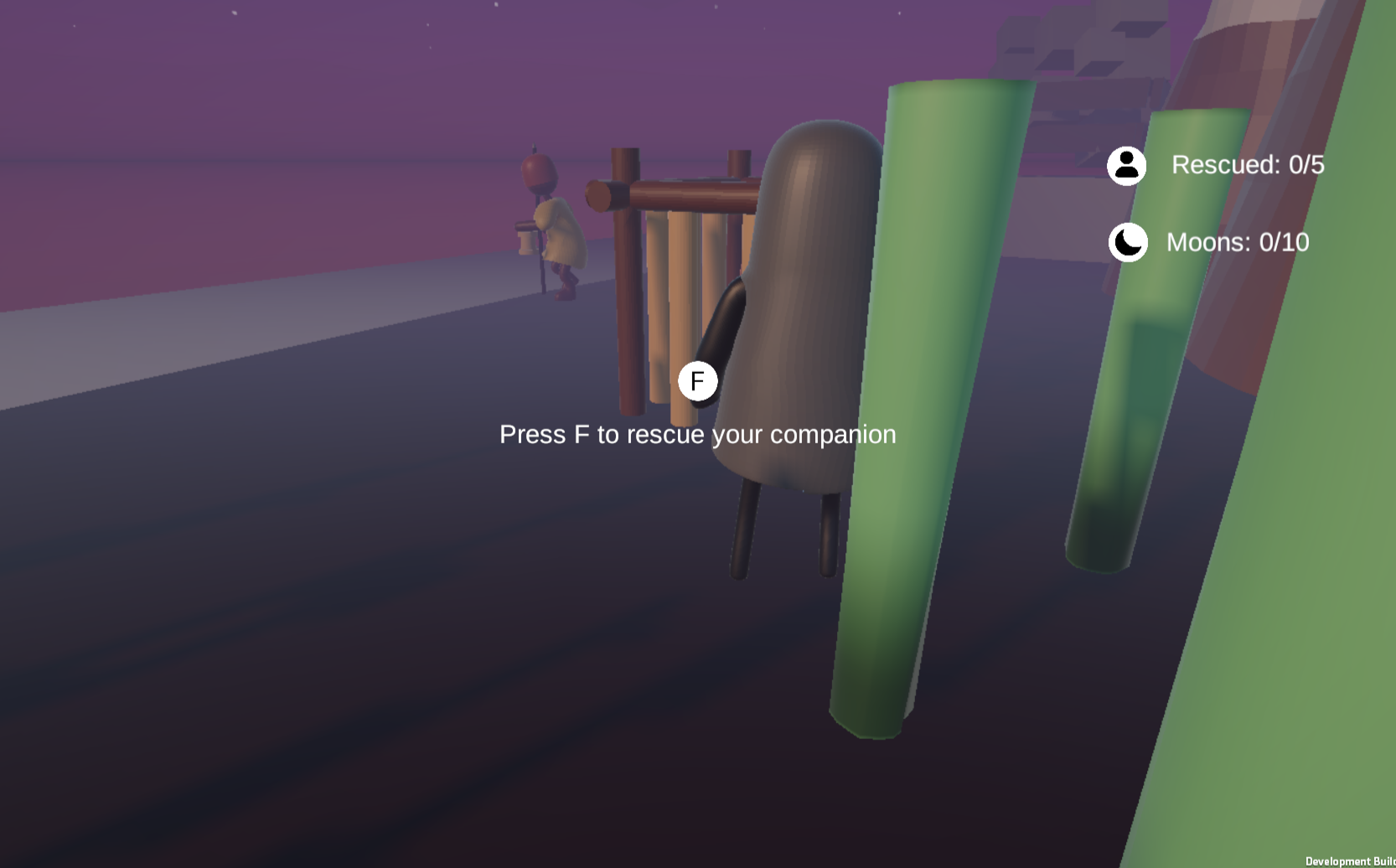 Players lose immediately if they are caught by a guard, encouraging careful movement, observation, and timing. Along the way, players can collect Moon items, which act as optional collectibles but do not affect the victory condition. Victory is achieved only when all companions have been successfully rescued.